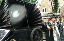 De zonnekar brengt Cornelis overal waar hij rijden kan. Onvermoeibaar brengt hij zijn verhalen aan de man. ‘Zeemeermin, echt gebeurd, echt waar!’.